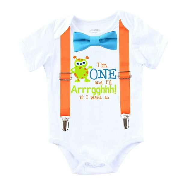 Monster First Birthday Outfit Shirt 1st Birthday Party Bow Tie Suspenders 12 Months Walmart Com